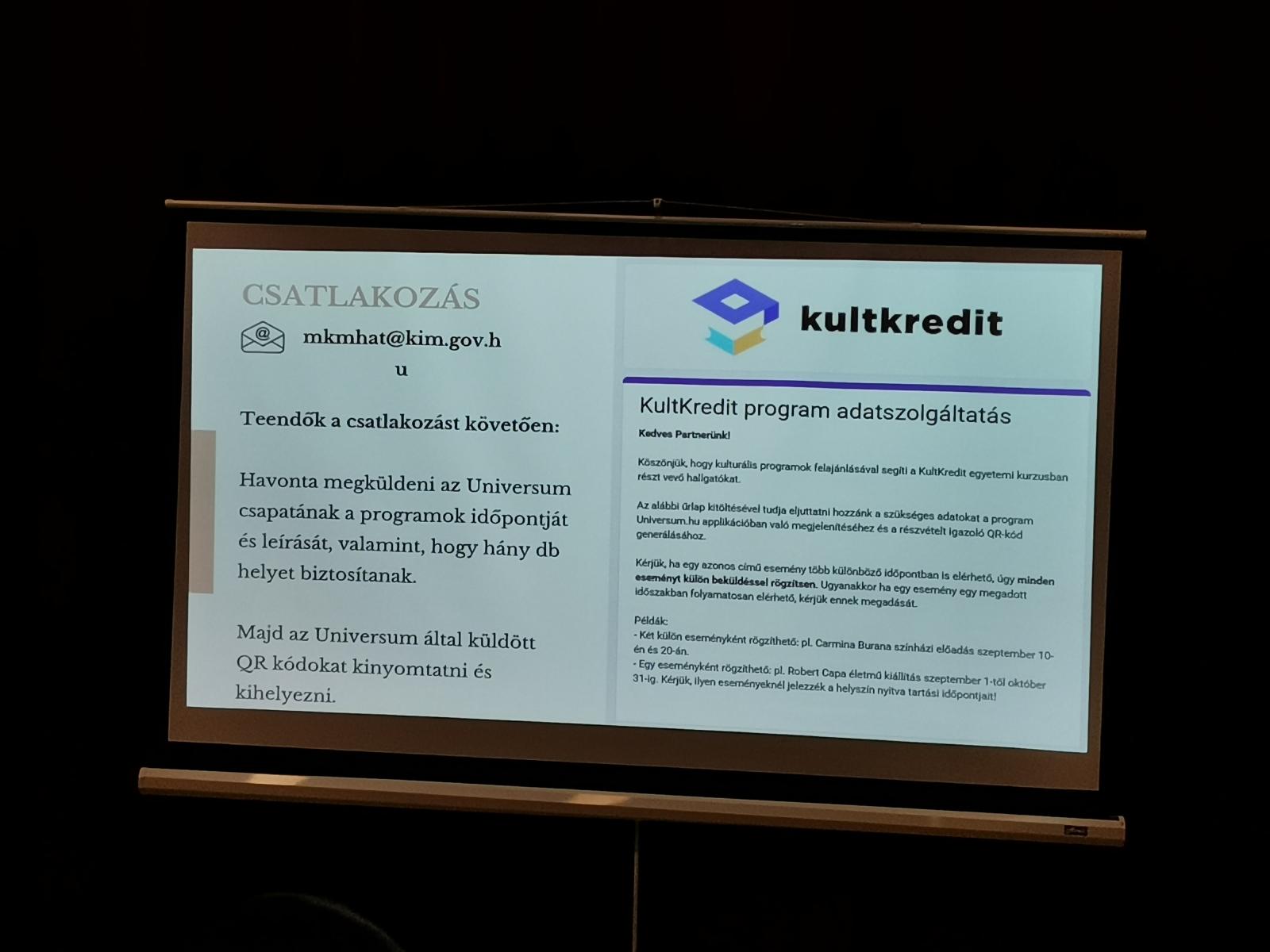 A program nyitóelőadásában Novák Irén, a Kulturális és Innovációs Minisztérium művészetért és közösségi művelődésért felelős helyettes államtitkára adott átfogó képet az aktuális kulturális szakpolitikai helyzetről, a kiemelt szakmai célokról, valamint bemutatta a KultKredit program főbb elemeit.