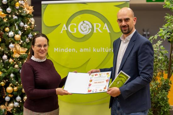 Az adomány átadóján Horváth Zoltán ügyvezető elmondta, a kollégák kezdeményezésére szervezték meg a jótékonysági sütivásárt, a kedvezményezett – több szervezet közül szavazás nyomán – az Alpokalja a Daganatos Gyermekekért Közhasznú Alapítvány lett. Az évzárón a kollégák és az AGORA üzleti partnerei is vásároltak a finomságokból, így gyűlt össze 155 ezer forint.