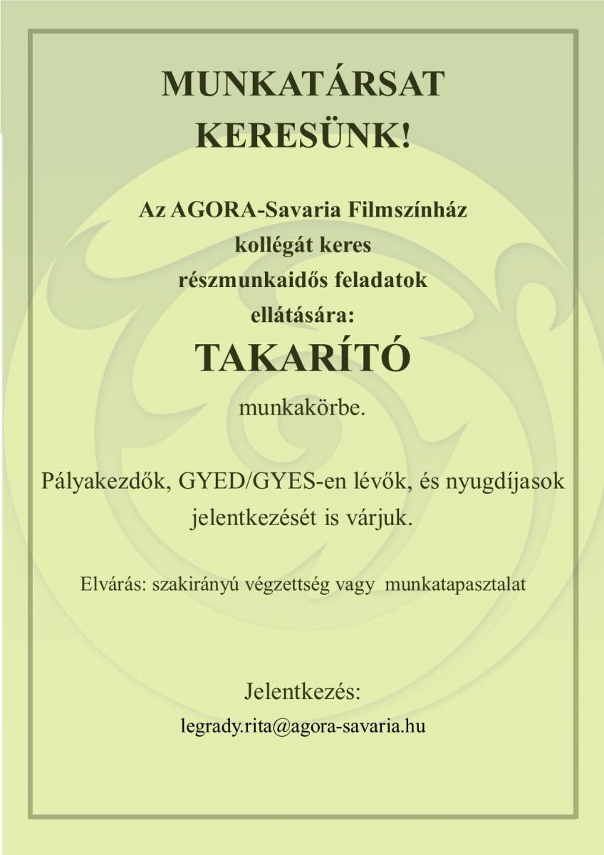 Az AGORA Savaria Nonprofit Kft. új kollégáját keresi