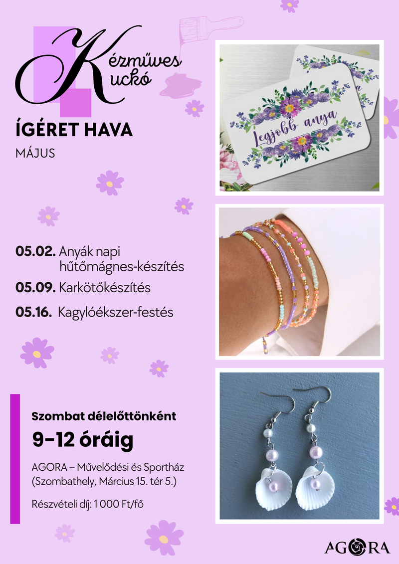 Szombat délelőttönként újabb és újabb bütykölési lehetőséggel várjuk az ügyes kezű óvodásokat és iskolásokat. Az érdeklődők a hagyományos és az újabb keletű kézműves technikákkal változatos alapanyagokból készíthetik el saját alkotásaikat – legyen az akár játék, dísz- és ajándéktárgy vagy hasznos használati tárgy.